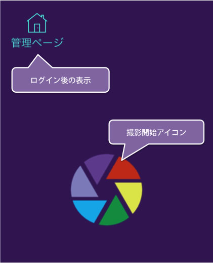 これにて全ての準備は完了しました。画面中央にある撮影ボタンをタップして直にvizo360をご利用頂けます。